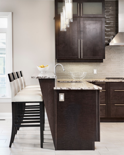 Espresso Color Kitchen from st.hzcdn.com Get the options of a custom cabinet line, but at affordable prices. This versatile combination of color and design is perfect with bold blacks and rich textures. It can be used for stippling and applying sand paints. Stunning white and blue mosaic cooktop tiles designed with blue shaker cabinets, oil rubbed bronze pulls and a gray countertop finished with a white plank backsplash. Cafe latte kitchen wall cabinets. Elegant kitchen design with white cabinets paired with marble countertops and white beveled subway tile backsplash. Designed to increase open space and finessed with a gleaming satin finish, this transitional style will bring a bright, airy feel to classic and contemporary kitchens alike. What color to paint the wall in the kitchen with white cabinet and purple couch?